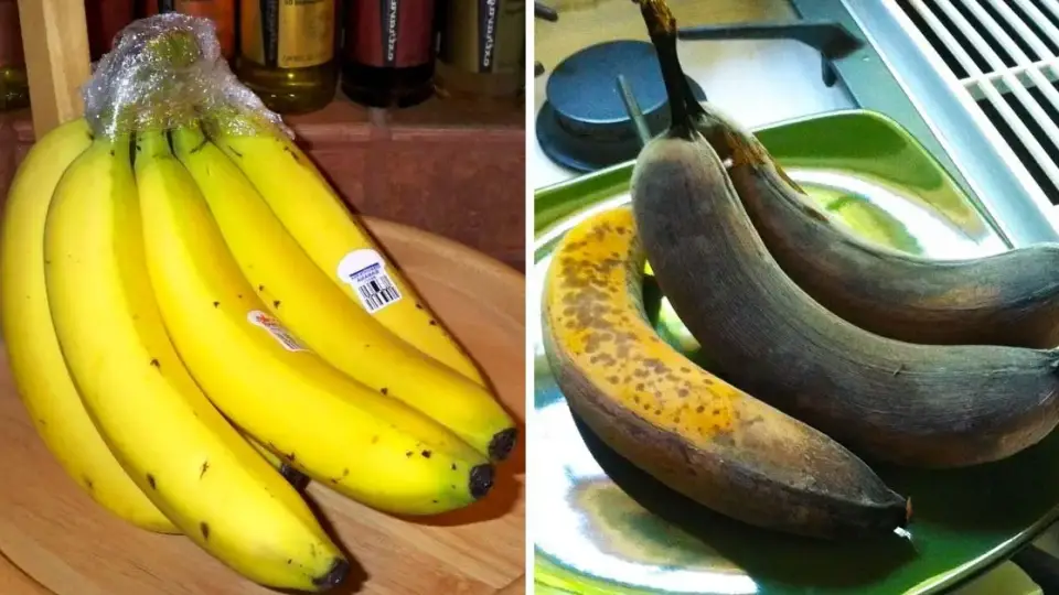 Tip 3: Wrap the tail of your bananas or the stem in plastic wrap or aluminum foil to prevent oxygen from entering and speed up the browning of the fruit.