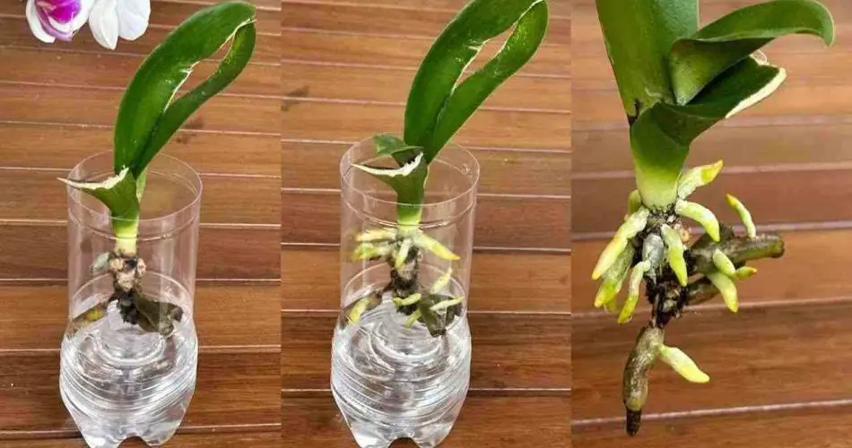 Place the bottle with the root in a cool, dry place and spray with the garlic solution every 2 days. After a month, the orchid will have developed healthy, strong roots. Water the plant often to keep it moist and you will see that it will grow quickly, even developing young, healthy leaves.