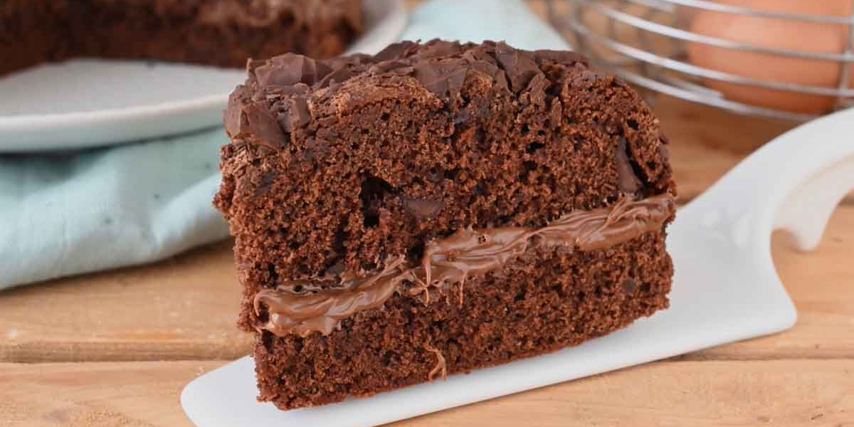 Wait for the cake to cool, cut it in half and fill it with the chocolate cream.